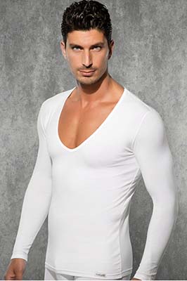 A v-neck t-shirt is a great piece to own: it elongates your neck, it is comfortable and it adds an interesting structure to your upper half, especially if you have rounder features on your face or torso. But, when speaking of very deep v-necks, the story changes. In theory, there is nothing wrong with showing off your chest – in a way, as we’ve seen in the case of the vest with no shirt paragraph, it works well. However, most deep v-necks simply look bad because they are very badly proportioned. To explain this proportion problem briefly, we can say that a deep v-neck is neither too covering to enhance and emphasize the male torso in a positive way as we explained earlier, but it is also not too revealing for it to be showy. In a way, it makes a man look like he is wearing a women’s push-up bra, and, generally, big breasts (or the illusion of big breasts) do not go well (in terms of proportion again) with the configuration of the average male body. As a note, do not confuse breasts with pectoral muscles, which have, obviously a different way of going with the male body, as they are in tandem with the average proportions of most men’s bodies.