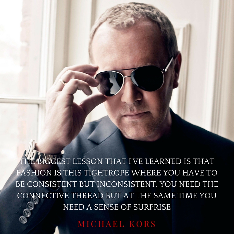 “The biggest lesson that I’ve learned is that fashion is this tightrope where you have to be consistent but inconsistent. You need the connective thread but at the same time you need a sense of surprise.” —Michael Kors