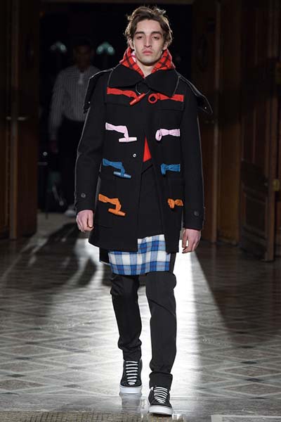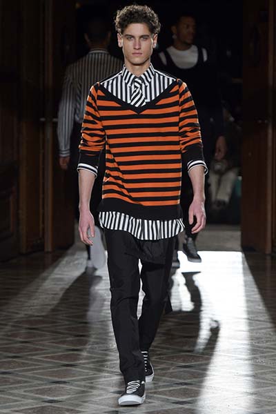 Different stripes are mixed together, yet the effect is not that of an illusion, but of cohesion, there are heavy knits with surprising bulges that surprisingly don’t disturb the outfits and childlike prints look serious and masculine.