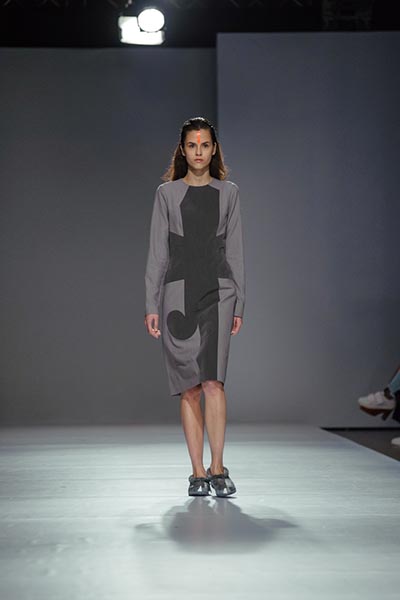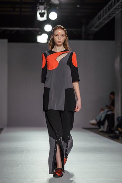 Inspired by the aesthetic of the constructivism of the 1920s and 30s, the collection featured a mix of sharp lines and shapes and soft curves and light areas. The alternating between these contrasting design elements resulted in a very dynamic collection of garments, therefore representing the inspiration for the collection. Just like many constructivist creative works, it was all about diagonals and the way in which these came together in purposeful intersections.