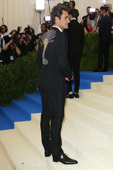 World-famous tennis player Roger Federer wore a stunning Gucci tuxedo by Alessandro Michele with a crystal embroidered cobra on the back. Sometimes, the surprise is in the back! We thought it is a very interesting choice to add the sparkle on the back. Great job!