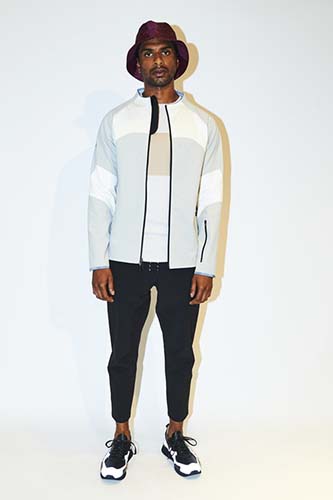 Today, a big trend both in the womenswear and the menswear world is turning sportswear into high fashion. This look by Dyne suggests a very upscale sports piece mixed with a casual pair of pants. The belt adds a nice touch to the look and completes it. What we really liked was how the pants allowed the jacket to steal the scene: sometimes you want to showcase a piece, in which case you need good supporting pieces.