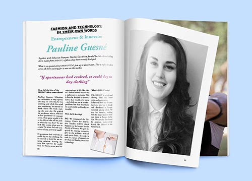 “If sportswear had evolved, so could day to day clothing. So he started to look for an existing solution. Among the very few options he could find, the fabric never met his expectations: it felt like plas tic, looked weird and/or was a nightmare to maintain. This is how he decided to invent a fabric that would solve sweat – and while we are at it stain – problems but that would also be comfortable and hardly no – ticeable.” – Pauline Guesné, Designer and Innovator