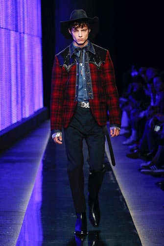 This DSquared2 outfit was very country and very contemporary. While in many ways it was a classic Western look, it was updated with a nice, flowy neckpiece and a slim fit.