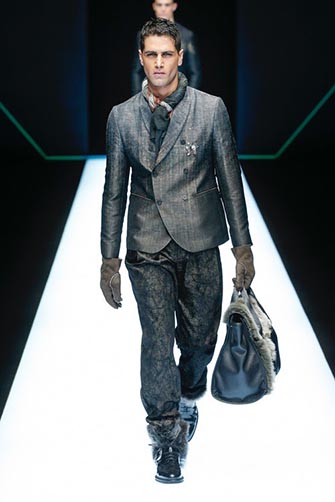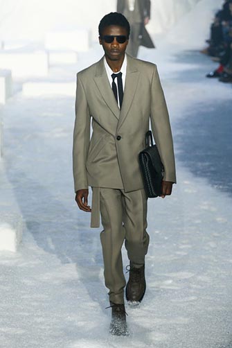 This look from the Ermenegildo Zegna collection looked really precise and sophisticated but relaxed and highly comfortable at the same time. The neckpiece redefined the tie and looked really cool and modern: a true new accessory for the 21st century that should get more traction in our opinion.
