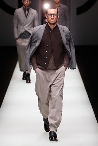 Following the athluxury and athleisure trends, the latest collection by Emporio Armani was sporty and dynamic, but remained true to the brand’s elegant trademark. Combining elements of dressy clothes with laid-back attire, the Italian label offered impressive looks that made the best of both worlds, both in styling and the pieces themselves. For example, this look features a dress jacket paired with pants that are borderline sportswear: sophistication both in the pieces and the styling.