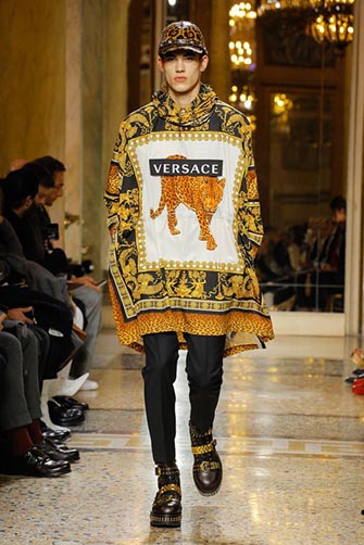 Versace’s collection really left us bouche bée with their opulent ostentatiousness. We loved looks like this one because they looked really amazing but also carried a metastory about how today people are extremely showy. Moreover, the collection and this look in particular confirm the trend of the come-back of the importance of labels, which has been discussed at the end of last year.