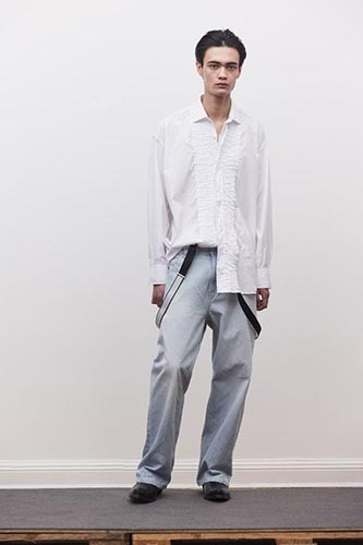 Mixing high and low and doing it right is quite hard, but this look from the Our Legacy autumn-winter 2018 collection is a class act of that. Simple pants in a soft color mixed were mixed with a dress ruffle shirt to obtain an effect of youth and freshness.