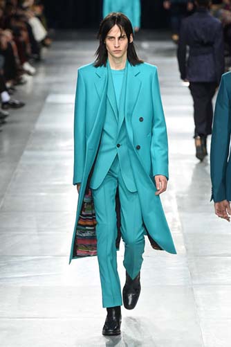 Overall though, the collection was quite remarkable as it brought some bright colors to the runway with some surprising choices such as light, bright teal. The fabric work was also quite great, the leather pieces were really amazing – the shorter jackets came as a great alternative to the high, four-button, double-breasted pieces, making the collection have balance and rhythm.