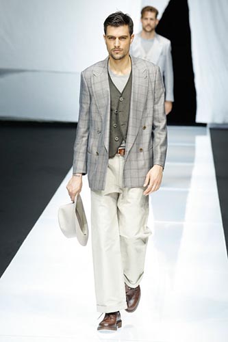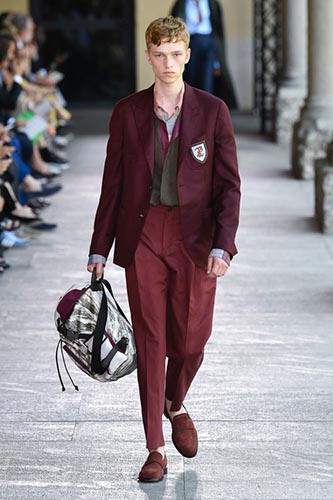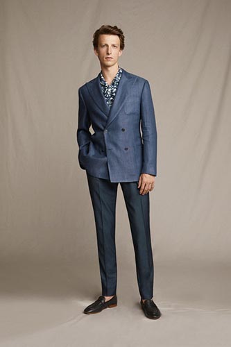 A suit in a fun print is always a great runway presence. Especially when the colors are so elegant and soft as the ones on this Ermenegildo Zegna suit. We loved the contrast between the fun print and the elegant, dusty colors.