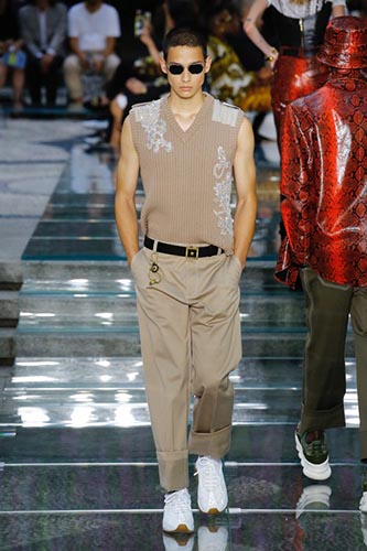 Who would have thought that you can create such a good bad boy look with a checkered shirt? Well, Missioni showed us that you can. The look is somewhat retro and follows last year’s trend of face coverings (which continued heavily this year too), but it worked really well. Great job!