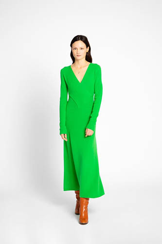 Green is a color that is rarely seen in clothes, as it is quite hard to make work. Very bright green is a shade that is also extremely hard to pull off – when you wear green, you really need to make sure the cut, shape and everything else is quite on point. This is why we salute this magnificent dress by Tome: it’s sleek, stylish and hyper-fresh!
