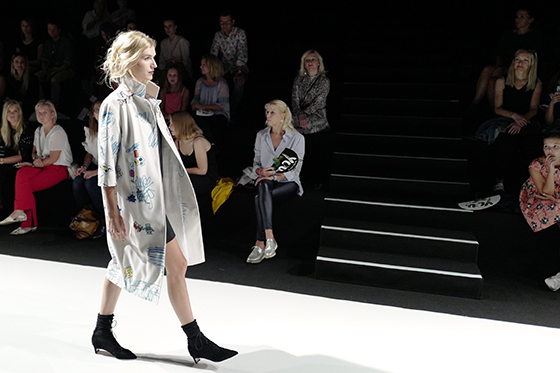 Smaranda Almasan. Romanian designer Smaranda Almasan was one of the big surprises of this year’s Vienna Fashion Week. She presented a collection featuring many colorful trench coats (which you don’t really see every day) and lots of looks composed of clothes with patterns. The pattern combos made real sense and were not done just for the sake of mixing patterns – this is what we like and want to see more: fashion with direction and purpose. The collection was so powerful that it even withstood the storm outside and the power outage.