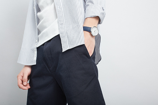 Thus, because of this strong simplicity, incorporating such a watch into an outfit is easy: to keep it cohesive, minimal watches go with minimal clothes: for example, they make great complimentary outfits to classic office suits. Surely, with a suit you probably won’t want to wear a watch with a rubber or canvas strap (even though textile straps work for rather casual environments): keep it leather or metal. They also work great with so-called “deconstructed” garments. Today, we see many flow