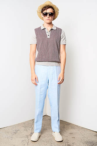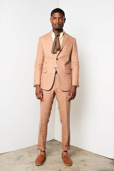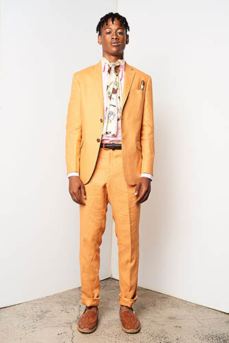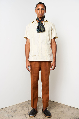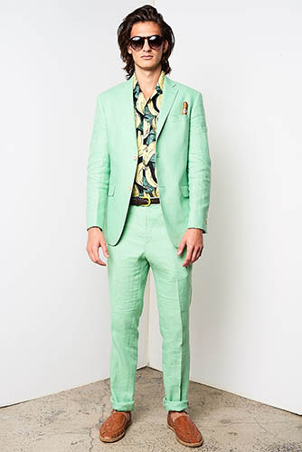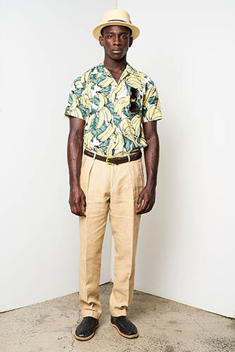 The mid-century aesthetic that still resides at the core of the Cuban aesthetic could be seen in striped blazers, knitted polos, neck scarves worn like sashes, pocket squares and Panama hats. Simple, striped prints that reminded us of the 1950s were present, but they were mixed with funny banana patterns that gave the collection a vacation feel. At least, a feel of an imagined vacation. David Hart explained this sense: “This collection is a celebration of the world’s view of Cuba and not a literal one. I personally have never been to Cuba, so this collection is based on an idea of Cuba I’ve been exposed to through books, media, and cinema as an American.”