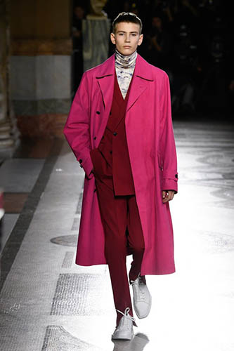 Red and pink is a rather hard combination to pull off, but Berluti delivered a fantastic pink and red look. What we loved about it was not just the color combo (meaning that great shades of the two colors were used to an impactful look), but also the contrast between the softness of the colors and the boldness of the masculine cuts. Great, great, great!