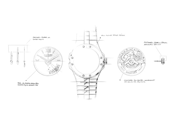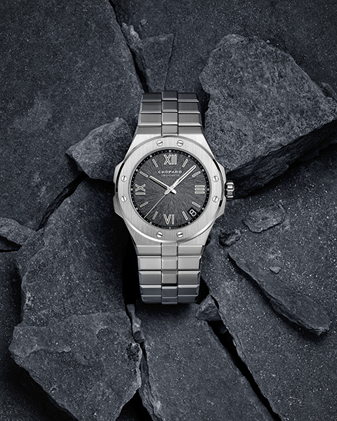 The sporty Alpine Eagle features a chronometer-certified movement and is crafted from an exclusive, ultra-resistant light-reflecting metal called Lucent Steel A223. This special steel, which is an aesthetic reference to glaciers was described by the brand as an “alchemist’s quest”, as the material created by Chopard is as complex and precious as gold. It features three main characteristics: firstly, it is comparable to surgical steel, making it dermo-compatible; secondly, it is 50% more resistant to abrasion than conventional steels and has a unique hardness; and thirdly, it has far less impurities than other steels, which allows it to reflect light, its brilliance and brightness being comparable to that of gold.