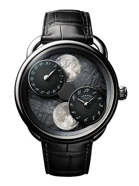 This stunning piece by Hermès features dials that made from real meteorites – talk about an out-of-this-world watch! Hermès has a done an amazing job at conveying an entire atmosphere through this watch: the colors go well with numbers font, which go really well with the shapes and proportions of the watch. This watch comes in a very limited edition and costs about 26,000 CHF (almost $27,000) per piece.