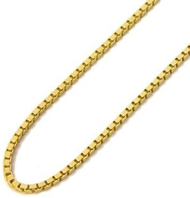 Box chains are also known as square link chains, briolettes or Venetian chains. They are made from a round wire that is flattened and formed into a square or box-style shape, which are then interlinked. Small box chains have a rather smooth and sleek appearance; while large box chains give a more rough and chunky look. In this sense, you can choose the type of model you prefer based on the vibe you want to give out.