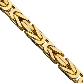 A Byzantine chain is a very intricate design, as it incorporates a rope-like texture and an organic textural design. These chains are supple and flexible, and drape well. The name, even though it seems very clear, is not actually known. These chains are comfortable, relaxed, and soft, all at once and can make a very good impression.