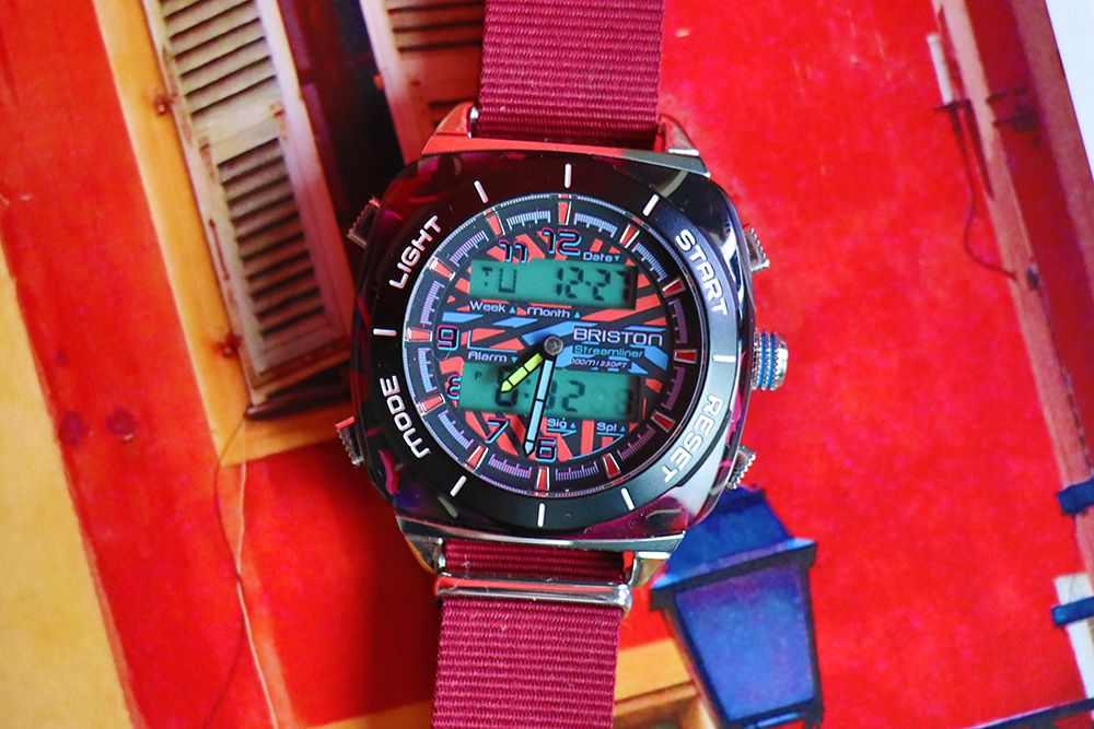 The Superluminova® dial provides visibility in the dark and gives this model a genuinely modern and contemporary flair that clearly sets it apart from the crowd. Besides telling the time (setting it up is really easy and intuitive), the watch also has other functions, which include a stopwatch, alarm, and date, and it also shows time digitally on a screen that lights up on the press of the upper-left button. This is a smart choice, as it is the most accessible button and allows you to simply push it whenever you want and need it, without any discomfort. We’ve worn Briston watches in the past, and all their models sit well on the wearer’s wrist and are easy to put on and take off. Briston watches, in general are very easy to wear for extended periods of time.