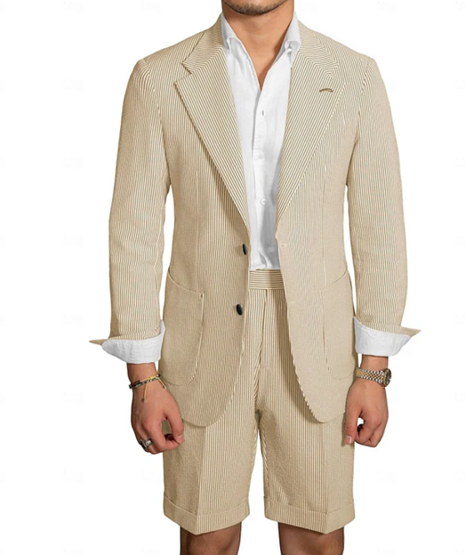 The perfect mix of pattern and design, this short suit is made especially for occasions when you want to stay stylish yet comfortable. The short trouser goes well with active outdoor celebrations while the well-tailored blazer keeps the overall look neat and polished.