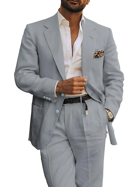 Travel back to the ‘80s in this on-trend set, complete with a roomy trouser and slightly oversized jacket. Made with light and airy linen for maximum breathability and comfort. Comes with classic notched lapels and a two-button front closure. Perfect for both contemporary and black-tie dress codes.