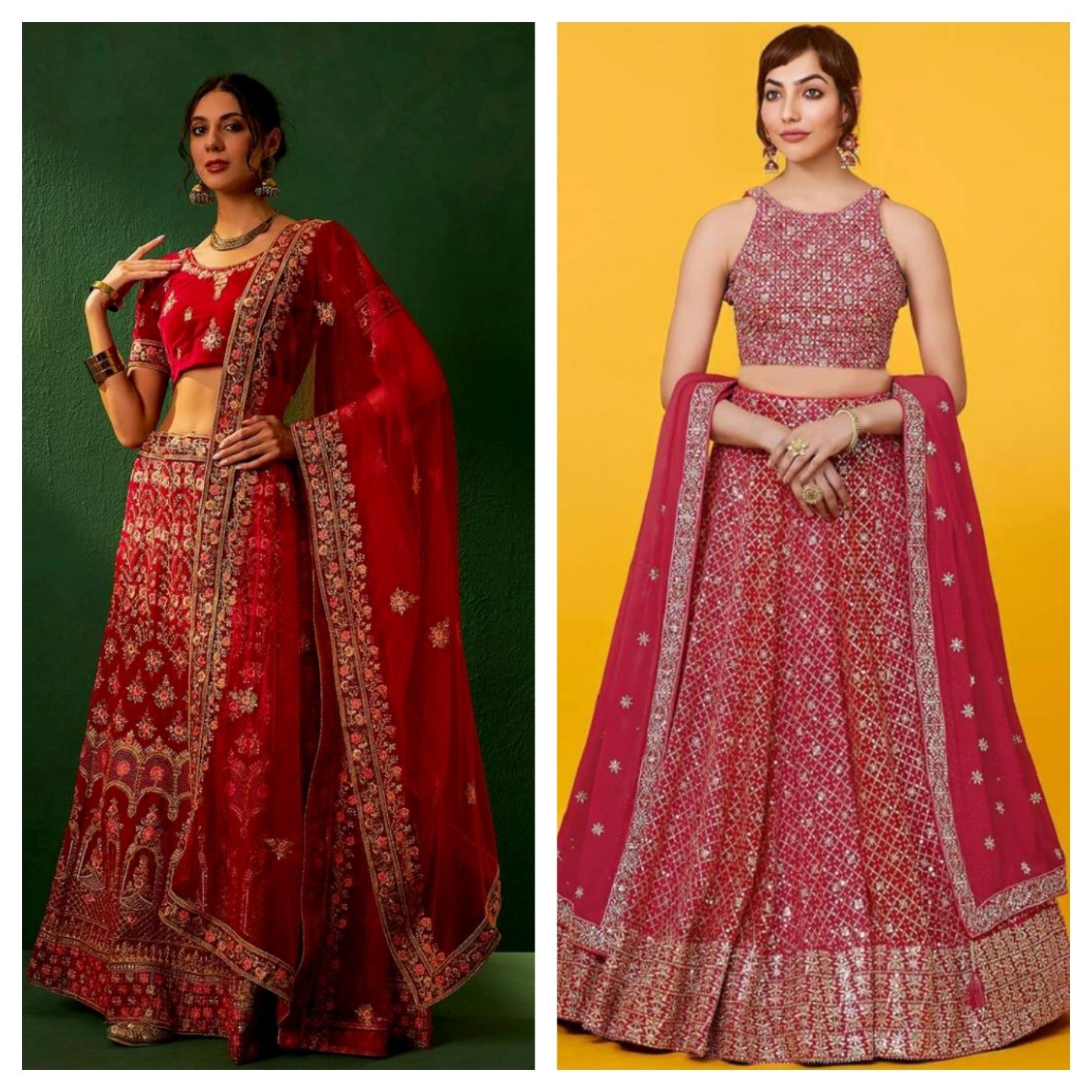 Radiant Red Lehengas: Red symbolizes romance as well as rage. If you are someone who chooses the red lehenga, you are likely to have a bold and fierce personality. You are confident, passionate, and someone who does not limit themselves.