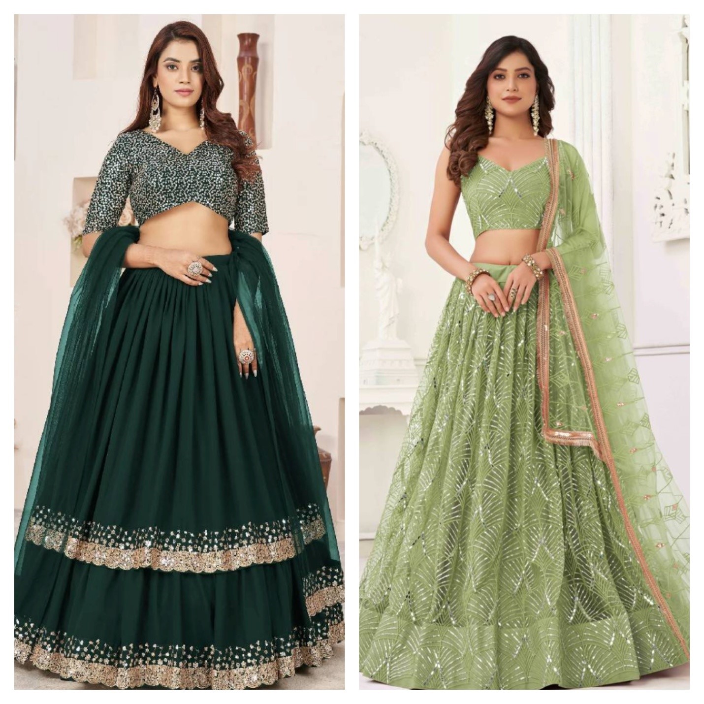 Green lehenga is often worn during festivals, weddings, and pre-wedding rituals. These symbolize hope, prosperity, and renewal. Fashion psychology associates green with peace and wisdom, making it a great choice to naturally stand out at every occasion.