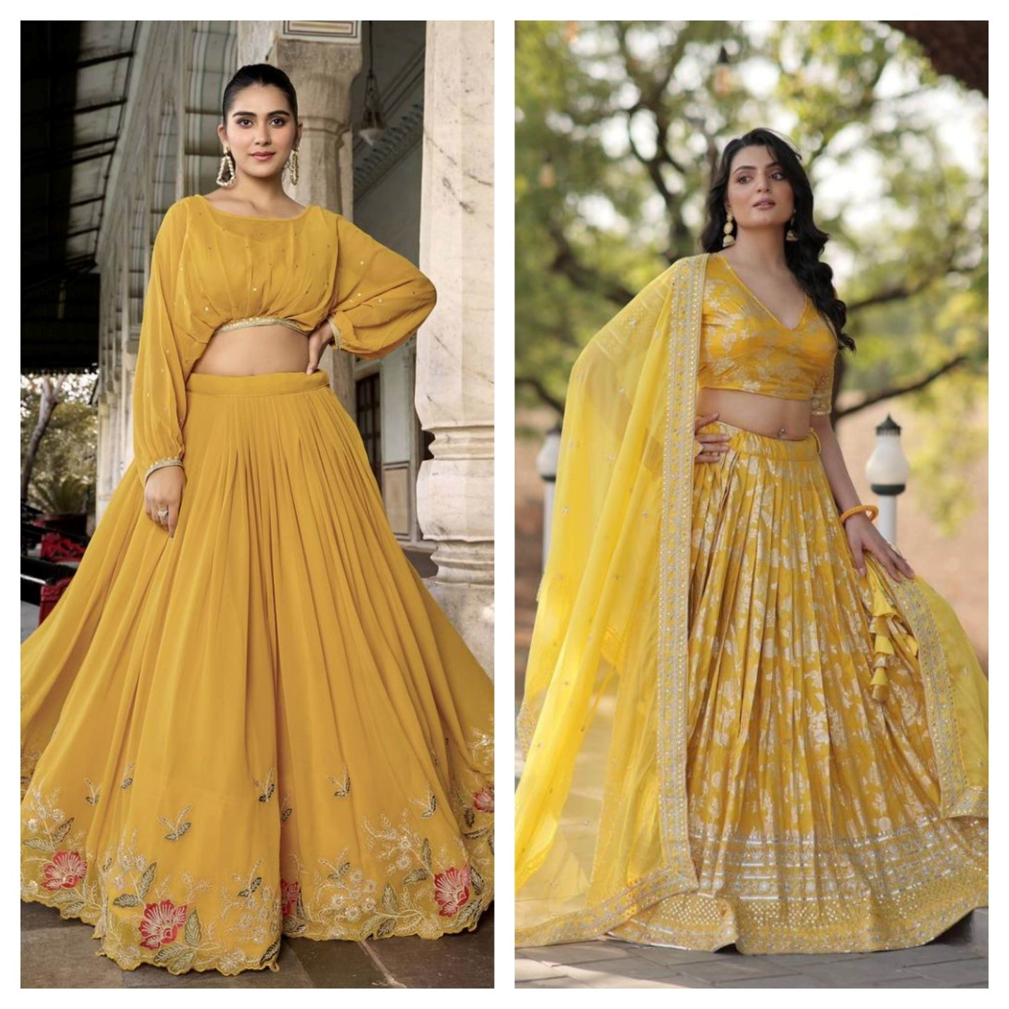 Yellow lehenga choli is a popular choice for engagement parties, festivals, and pre-wedding ceremonies like haldi and sangeet. According to fashion psychology, a yellow lehenga choli signifies brightness and positivity. If you are also someone who wants to light up the room with your presence, adorn the vibrant yellow lehenga choli and shine brightly.