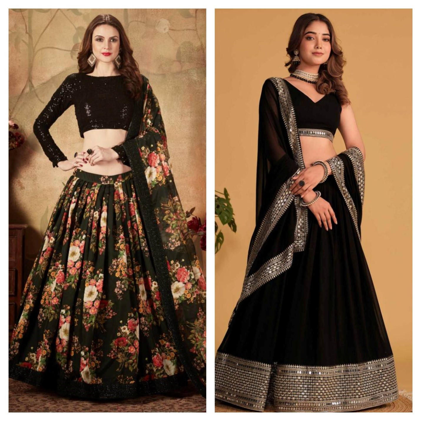Bold Black Lehengas: Most of us have a rule while shopping, which says: If it’s not black, put it back! Such is the aura of this bold yet beautiful black outfit.