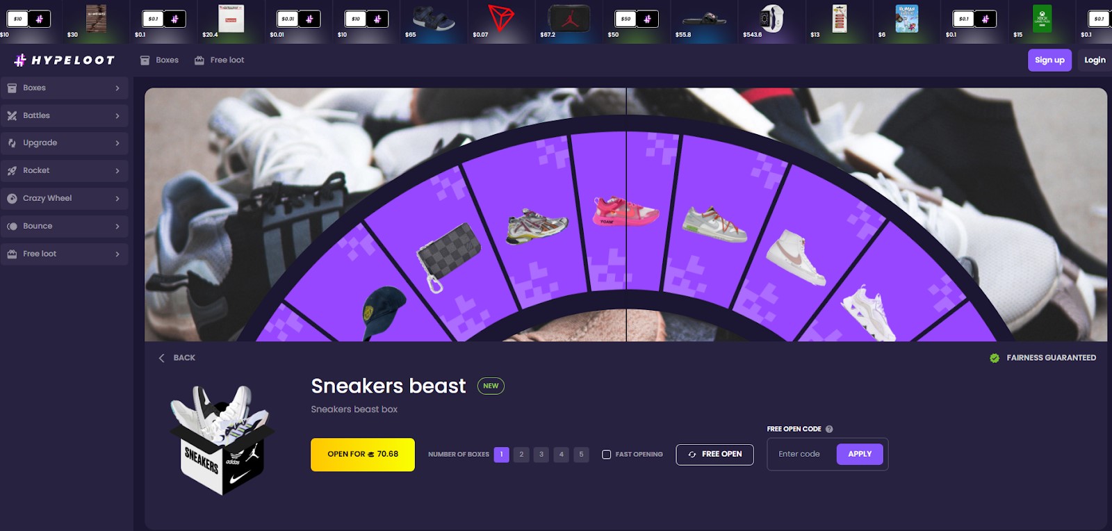 The box aims to strike a balance between premium items and more attainable rewards, offering a middle ground for users who like to take calculated risks. However, the platform leans heavily on cryptocurrency for payments and offers limited coverage beyond sneakers and streetwear. Technical constraints also reduce its appeal for high-stakes collectors, with no expanded prize tiers or advanced box features. While the sneaker selection is strong, the platform’s scope and structure remain narrow—best suited for casual users comfortable with crypto and a focused catalog.