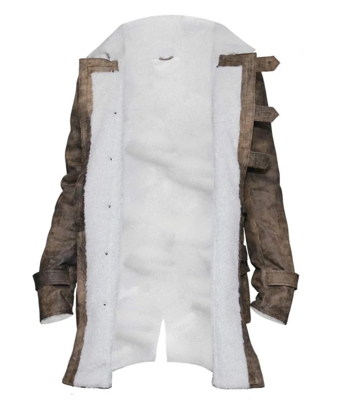 And the coat? This is not just a costume gravy train ride; this is a presence in itself. Distressed brown faux leather, thick shearling lining, and those military straps that signal you are not here for questions but to take over. This coat is long, heavy, intimidating, even though in the best way possible. And it’s warm. You can be comfortable while everyone else shivers under their heavy costumes.