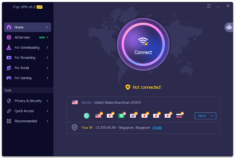 Installing iTop VPN is simple. After downloading the app, the system guides you through a quick setup. The design is clean, and the options are easy to understand. Even users who are not tech-savvy can connect to a server with a single click. This welcome simplicity makes the tool approachable.